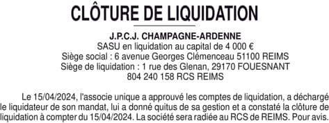 ARI 59796 JPCJ CHAMPAGNE Liquidation
