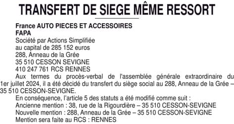 La présentation de votre annonce peut varier selon la composition graphique du journal