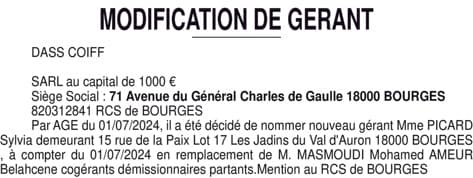 La présentation de votre annonce peut varier selon la composition graphique du journal