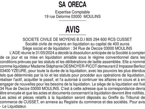 DISSOLUTION SCM B.D.I.