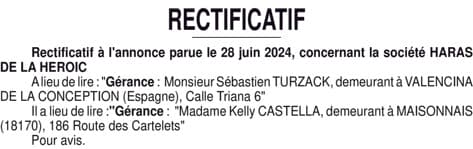 SR 050473 HARAS DE LA HEROICA - Annonce rectificative