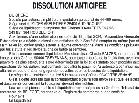 La présentation de votre annonce peut varier selon la composition graphique du journal