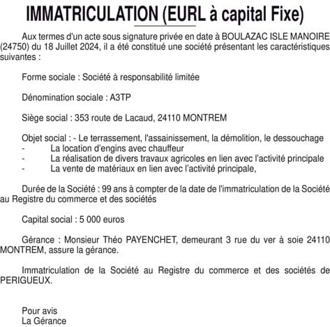 La présentation de votre annonce peut varier selon la composition graphique du journal