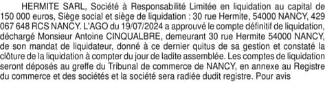 102223 HERMITE LIQUIDATION