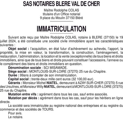 SAS NOTAIRES BLERE VAL DE CHER - Indre-et-loire (37)