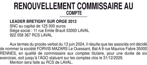 LEADER BRETIGNY SUR ORGE 2012 NOMINATION CAC 2024