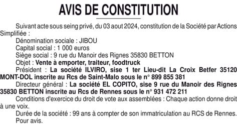 La présentation de votre annonce peut varier selon la composition graphique du journal