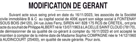 La présentation de votre annonce peut varier selon la composition graphique du journal