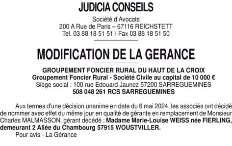 GFR DU HAUT DE LA CROIX/Gérance