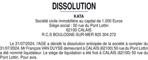 La présentation de votre annonce peut varier selon la composition graphique du journal