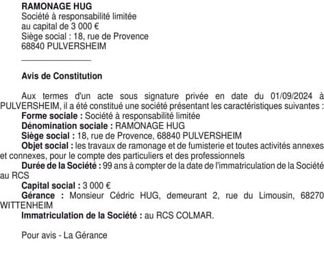 dans le journal LES PETITES AFFICHES DU HAUT RHIN