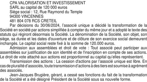 CPA VALORISATION ET INVESTISSEMENT - Val-de-marne (94)