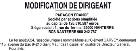 Paragon France - nomination DG