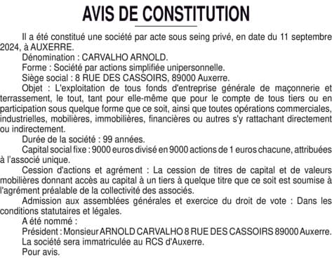 La présentation de votre annonce peut varier selon la composition graphique du journal