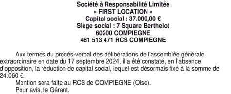 SAS FIRST LOCATION REDUCTION DE CAPITAL