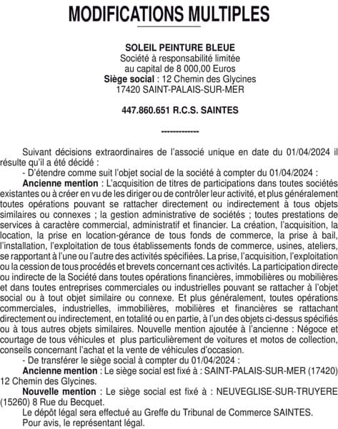 SOLEIL PEINTURE BLEUE - Charente-maritime (17)