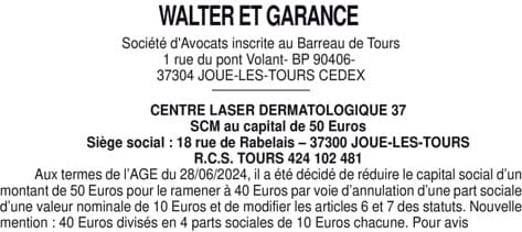 JULE - 22400473 CENTRE LASER DERMATOLOGIQUE 37 - REDUCTION CAPITAL
