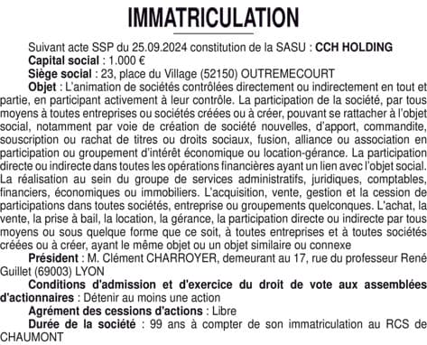 CCH HOLDING - Haute-marne (52)