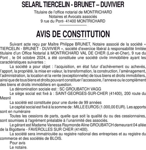 SELARL TIERCELIN BRUNET DUVIVIER - Loir-et-cher (41)