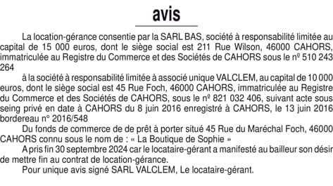 La présentation de votre annonce peut varier selon la composition graphique du journal