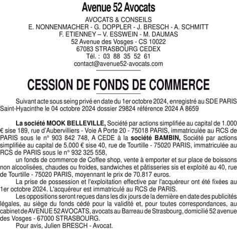 CESSION FONDS DE COMMERCE