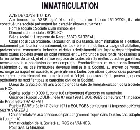 La présentation de votre annonce peut varier selon la composition graphique du journal