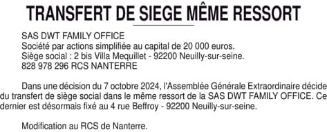 Transfert du siège social dans le même ressort