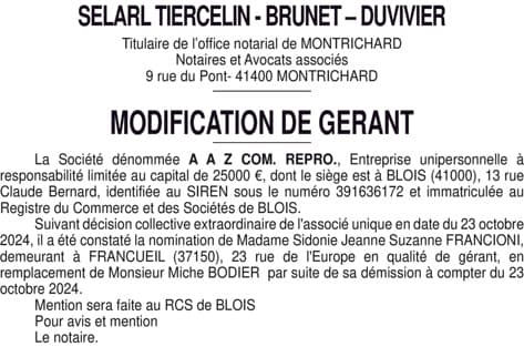 SELARL TIERCELIN BRUNET DUVIVIER - Loir-et-cher (41)