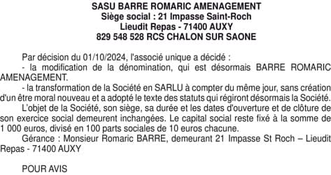 BARRE ROMARIC AMENAGEMENT - Saône-et-loire (71)