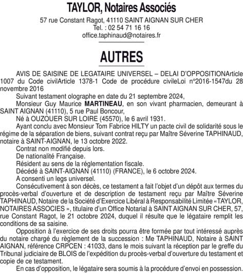TAYLOR, NOTAIRES ASSOCIES - Loir-et-cher (41)