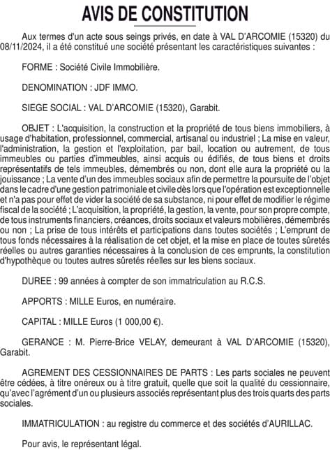 SCI JDF IMMO - Cantal (15)