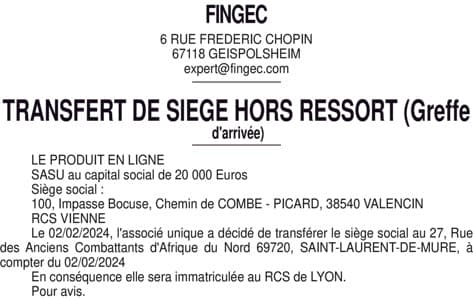 TRSFERT LE PRODUIT EN LIGNE - GREFFE D'ARRIVEE