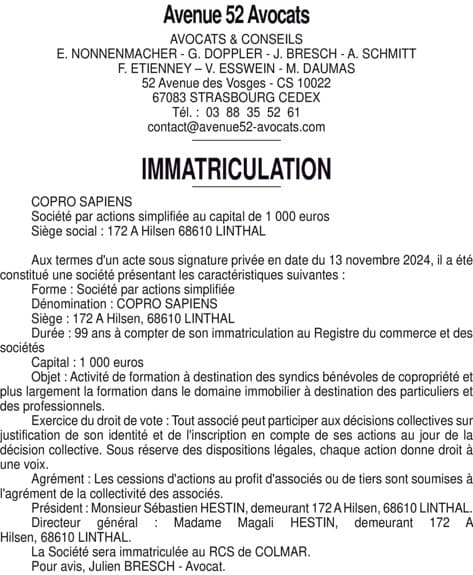 dans le journal LES PETITES AFFICHES DU HAUT RHIN