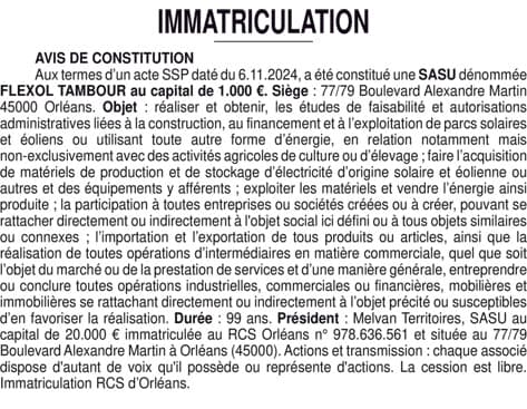 FLEXOL TAMBOUR - Loiret (45)
