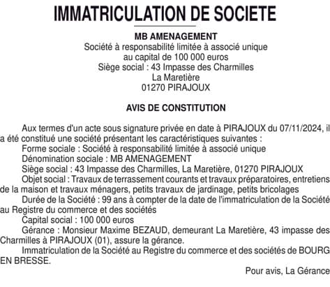 La présentation de votre annonce peut varier selon la composition graphique du journal
