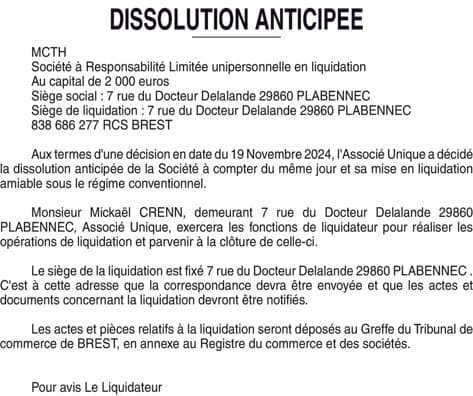 MCTH - dissolution