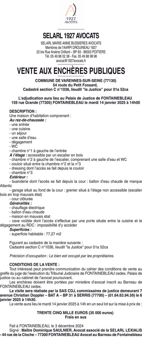 La présentation de votre annonce peut varier selon la composition graphique du journal