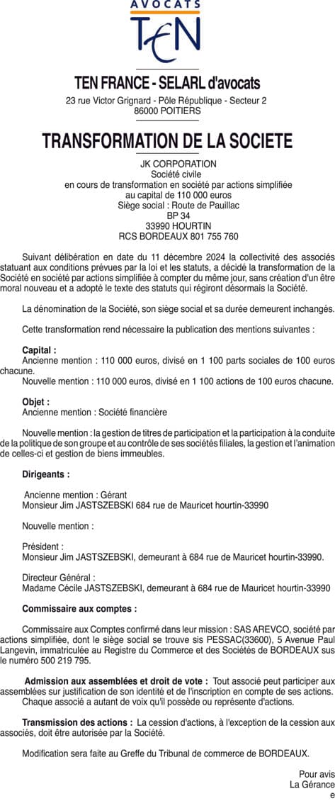 JK CORPORATION - Gironde (33)