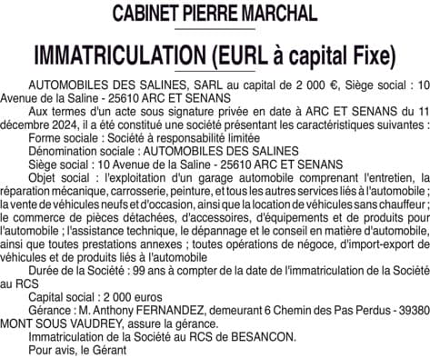 La présentation de votre annonce peut varier selon la composition graphique du journal