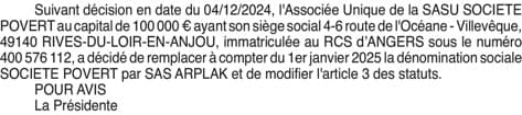 POVERT - MODIFICATION DENOMINATION SOCIALE