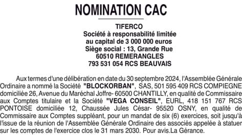 TIFERCO - nomination CAC