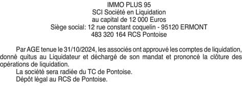 MANEWCO IMMO PLUS 95 LIQUIDATION