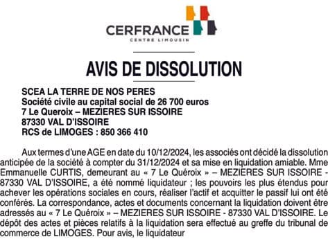 SCEA LA TERRE DE NOS PERES - Haute-vienne (87)
