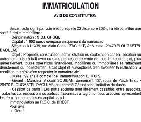La présentation de votre annonce peut varier selon la composition graphique du journal