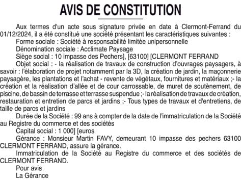 La présentation de votre annonce peut varier selon la composition graphique du journal
