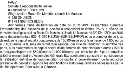La présentation de votre annonce peut varier selon la composition graphique du journal