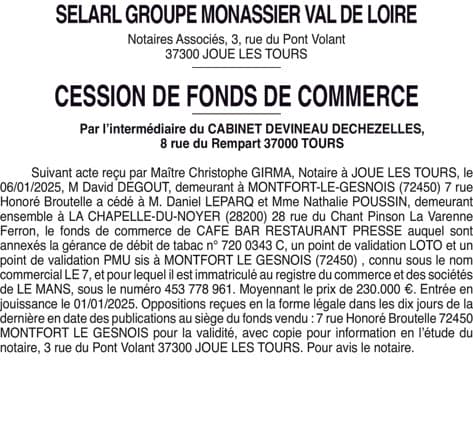 SELARL GROUPE MONASSIER VAL DE LOIRE - Sarthe (72)