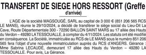 MAGSOUGE - Transfert de siège (nouveau ressort)