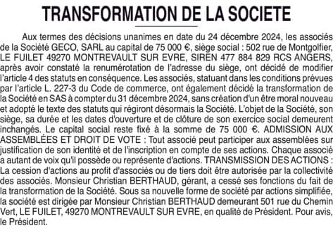 La présentation de votre annonce peut varier selon la composition graphique du journal
