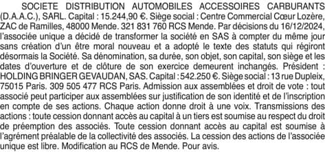 SOC DISTRIBUTION AUTOMOBILES ACCESSOIRES CARBURANTS - Lozère (48)